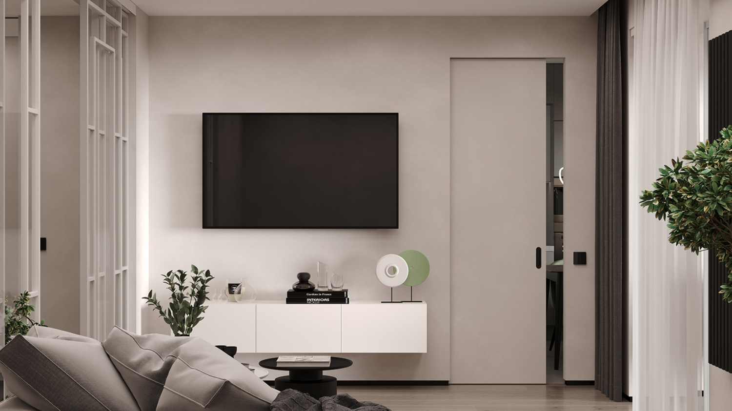 При открывании перемещается внутрь стены